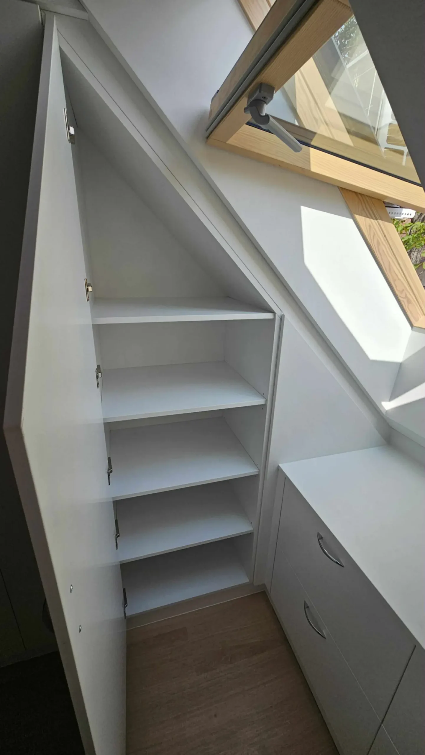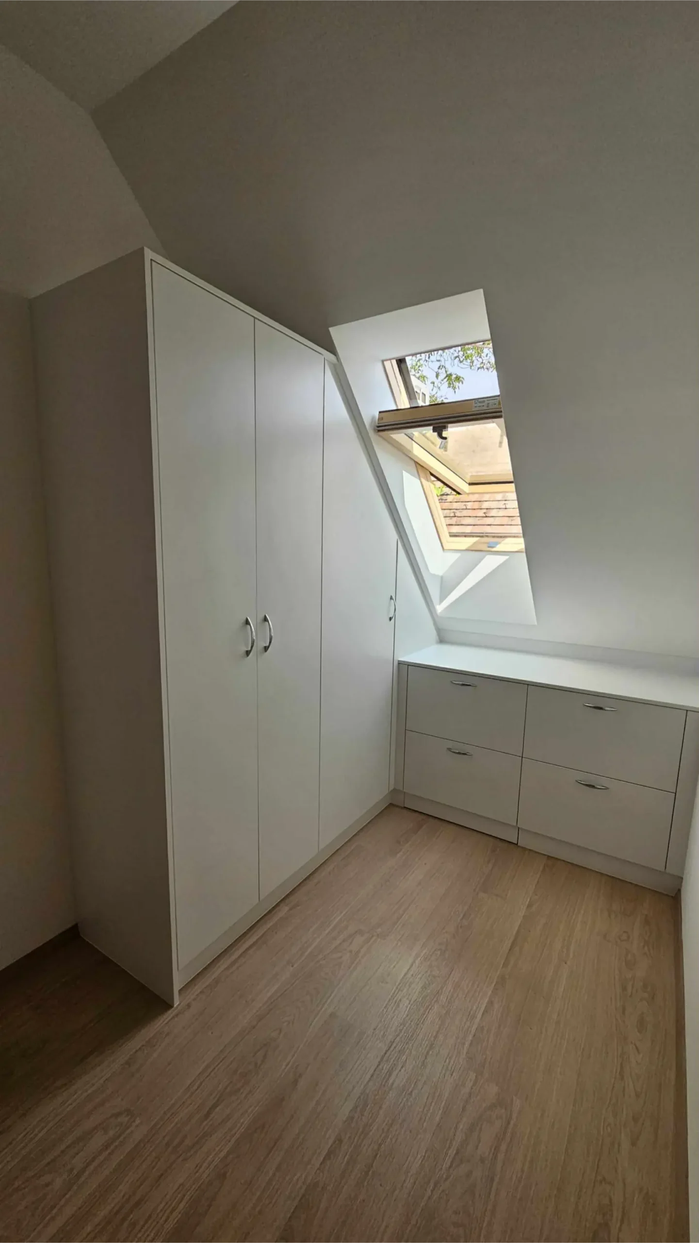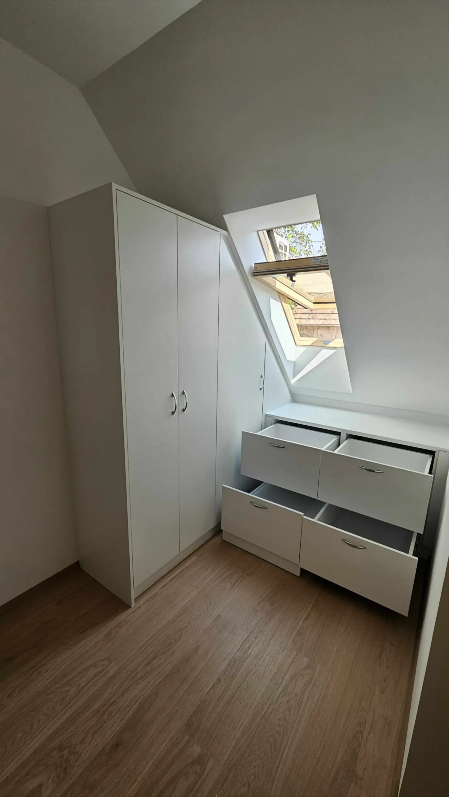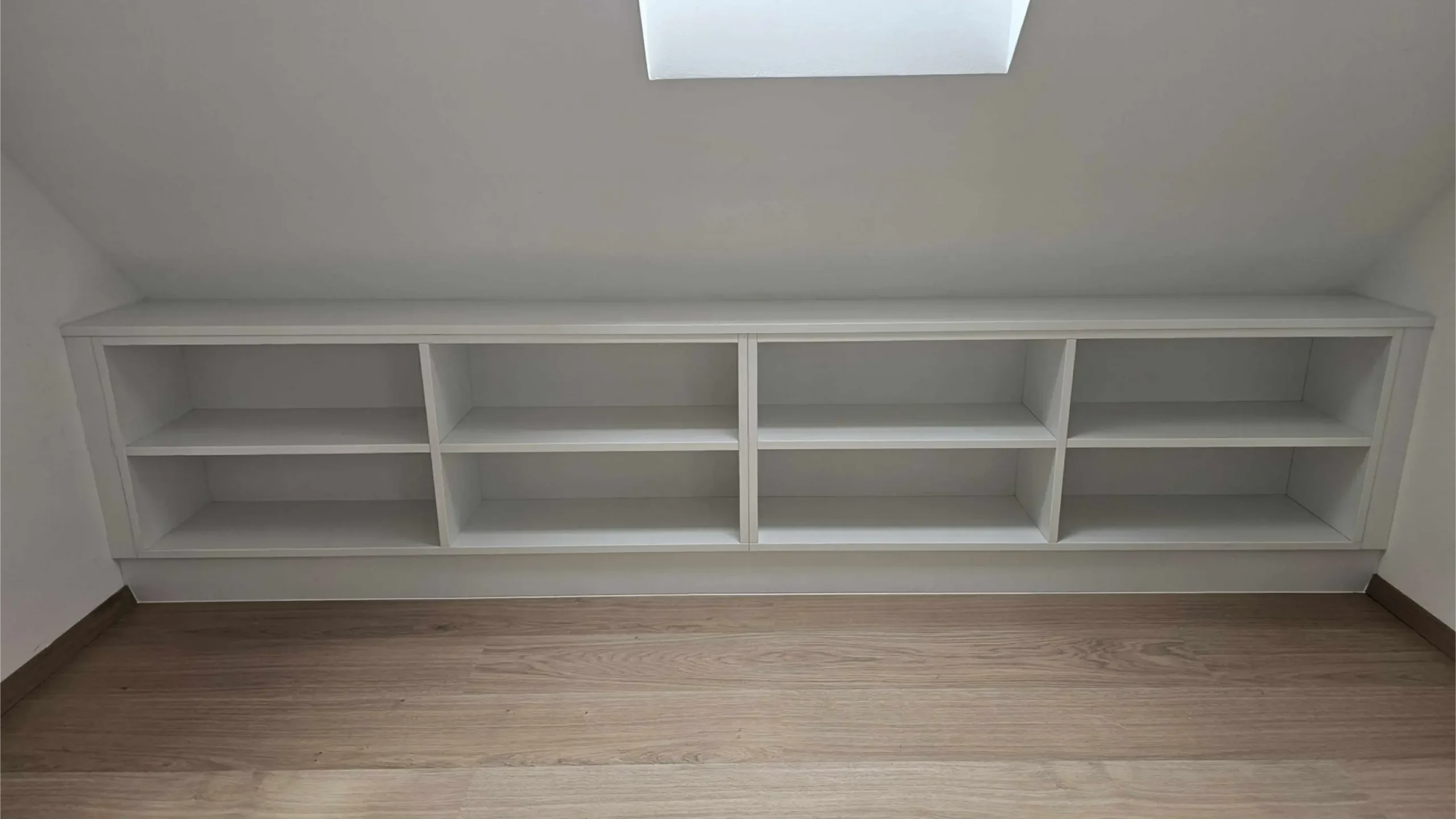 A tetőtér mindig különleges terep: a különböző szögben futó tetősíkok miatt minden bútor egyedi megoldást igényel. Itt nincs két egyforma fal, így a pontosság kulcsfontosságú. Egy apró eltérés is könnyen oda vezethetne, hogy a bútor nem illeszkedik a helyére.